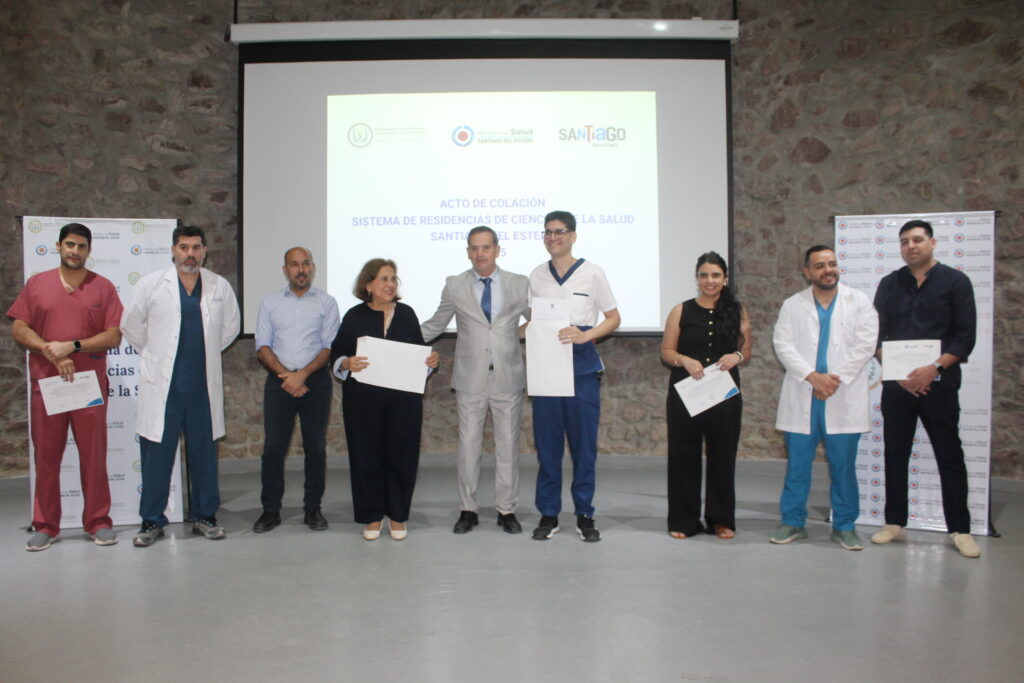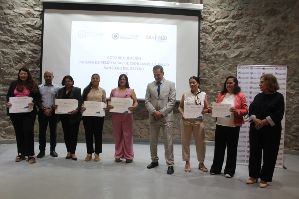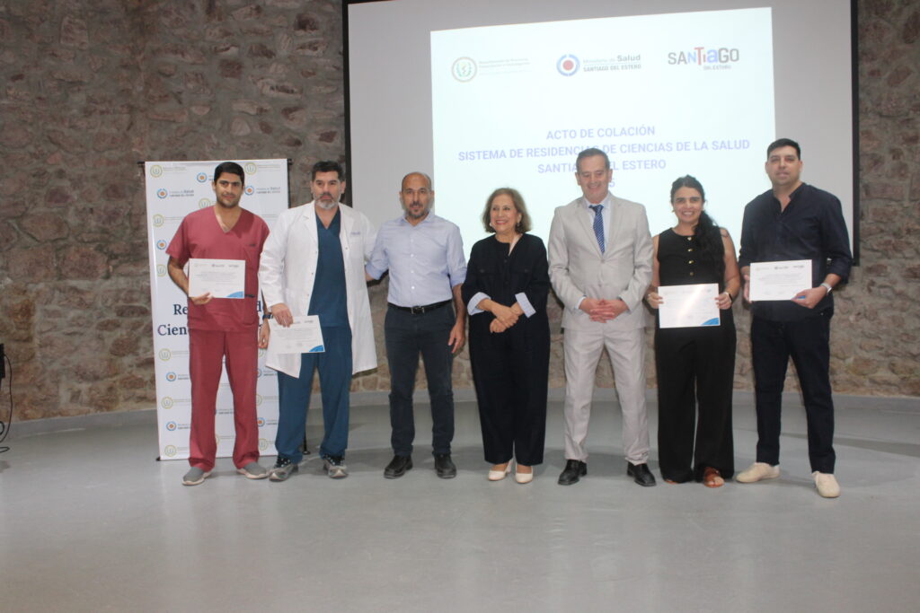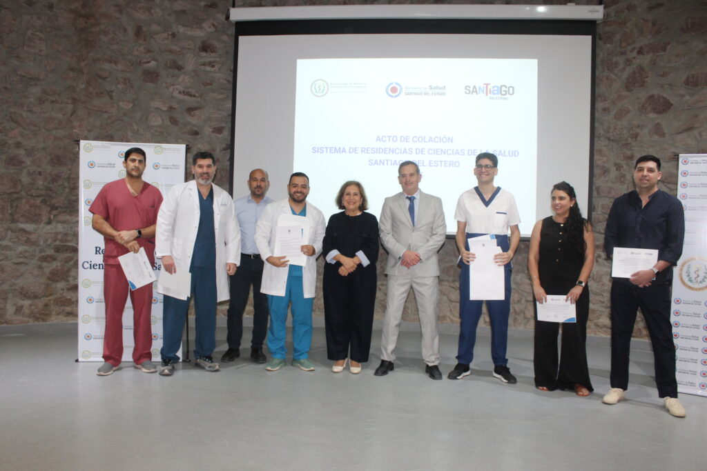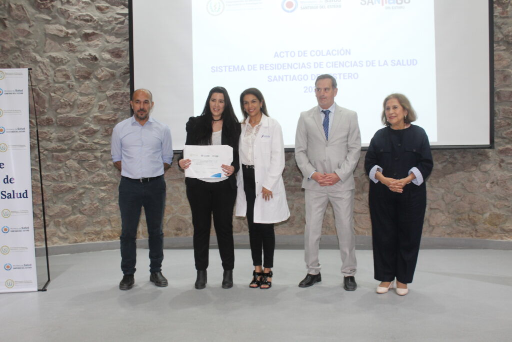 La ceremonia contó con la presencia de la ministra de Salud, Lic. Natividad Nassif; el secretario de Salud, Dr. Gustavo Sabalza; el director de Docencia, Capacitación e Investigación, Dr. Sergio Scrimini; directores de hospitales, instructores, jefes de residencias y familiares de los egresados.