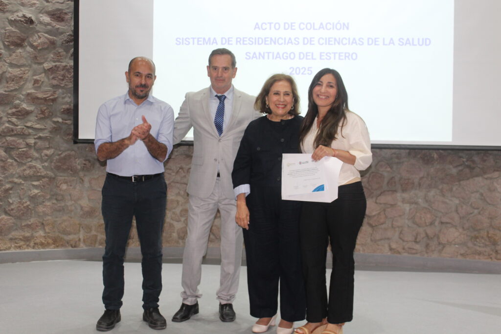 En representación de sus colegas, la Dra. Florencia Mitre, primera egresada de la residencia posbásica en Cirugía Ginecológica Mínimamente Invasiva, expresó su emoción y agradecimiento: “Tuve el privilegio de volver a mi provincia para continuar mi formación y especializarme en un área de gran demanda, gracias al apoyo del Ministerio de Salud y de mis formadores. Esta posibilidad me permitió crecer profesionalmente sin dejar de cumplir el rol más importante de mi vida: ser madre. Es una enorme satisfacción haber podido formarme en mi tierra y aportar mis conocimientos al sistema de salud de Santiago del Estero”.
