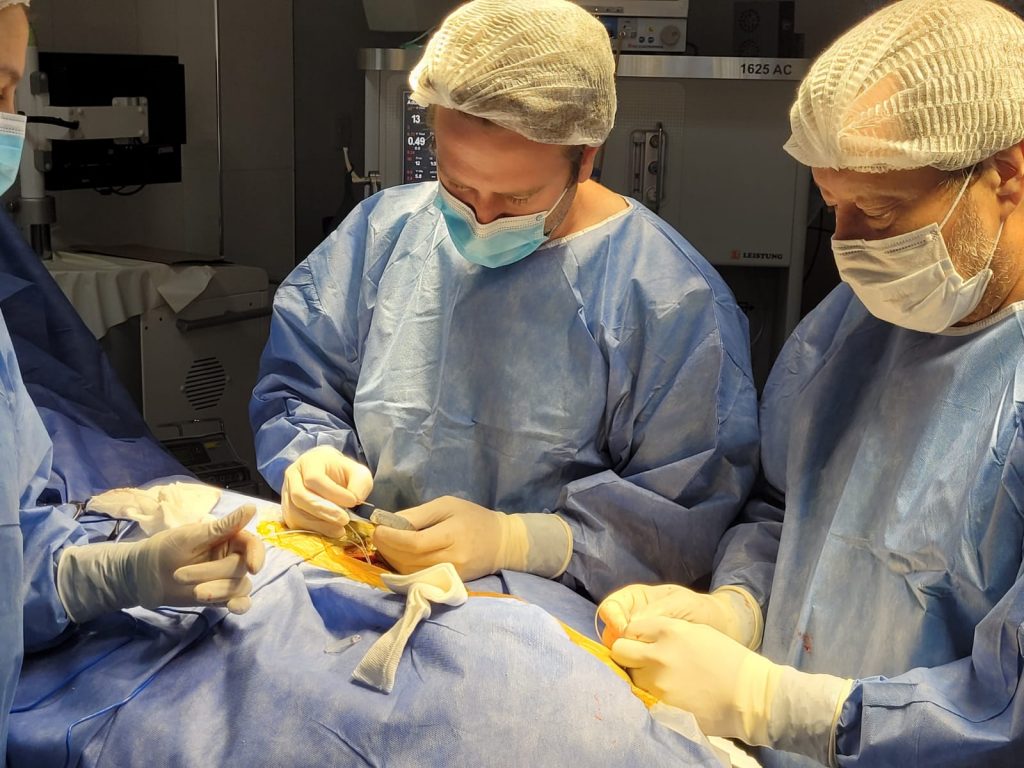 “Es un proceso que demora entre 6 a 8 horas donde intervienen, además de los cirujanos, un bioingeniero, un instructor especial, especializado en este tipo de cirugías, el equipo de imágenes. Es un esfuerzo colectivo y estamos muy orgullosos de poder haberse llevado a cabo esta primera cirugía en la provincia para un paciente santiagueño sin cobertura social. Antes, para poder acceder a esta cirugía, otros pacientes santiagueños tenían que viajar a provincias como Buenos Aires o Tucumán”, destacó el Dr. Tonero.