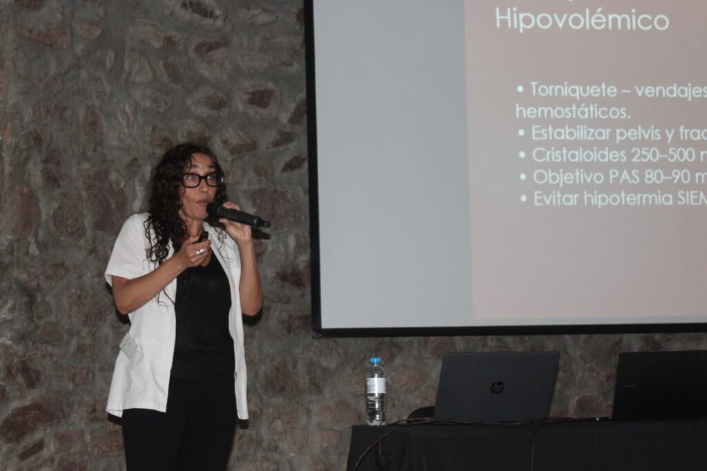 Durante la jornada se desarrollaron conferencias sobre la “evaluación y manejo inicial de la víctima en trauma”, que estuvo a cargo del Dr. Néstor Fushimi; la segunda conferencia, se tituló; “actualizaciones sobre la restricción del movimiento”, fue presentada por el TSEM Luciano Gandini y la tercera conferencia, referida al “Shock y TEC”, donde profundizó en la atención del paciente con trauma encefalocraneano y condiciones críticas asociada, a cargo Jessica Arturi Scrimini, médica neurointensivista y coordinadora de la Unidad STROKE.